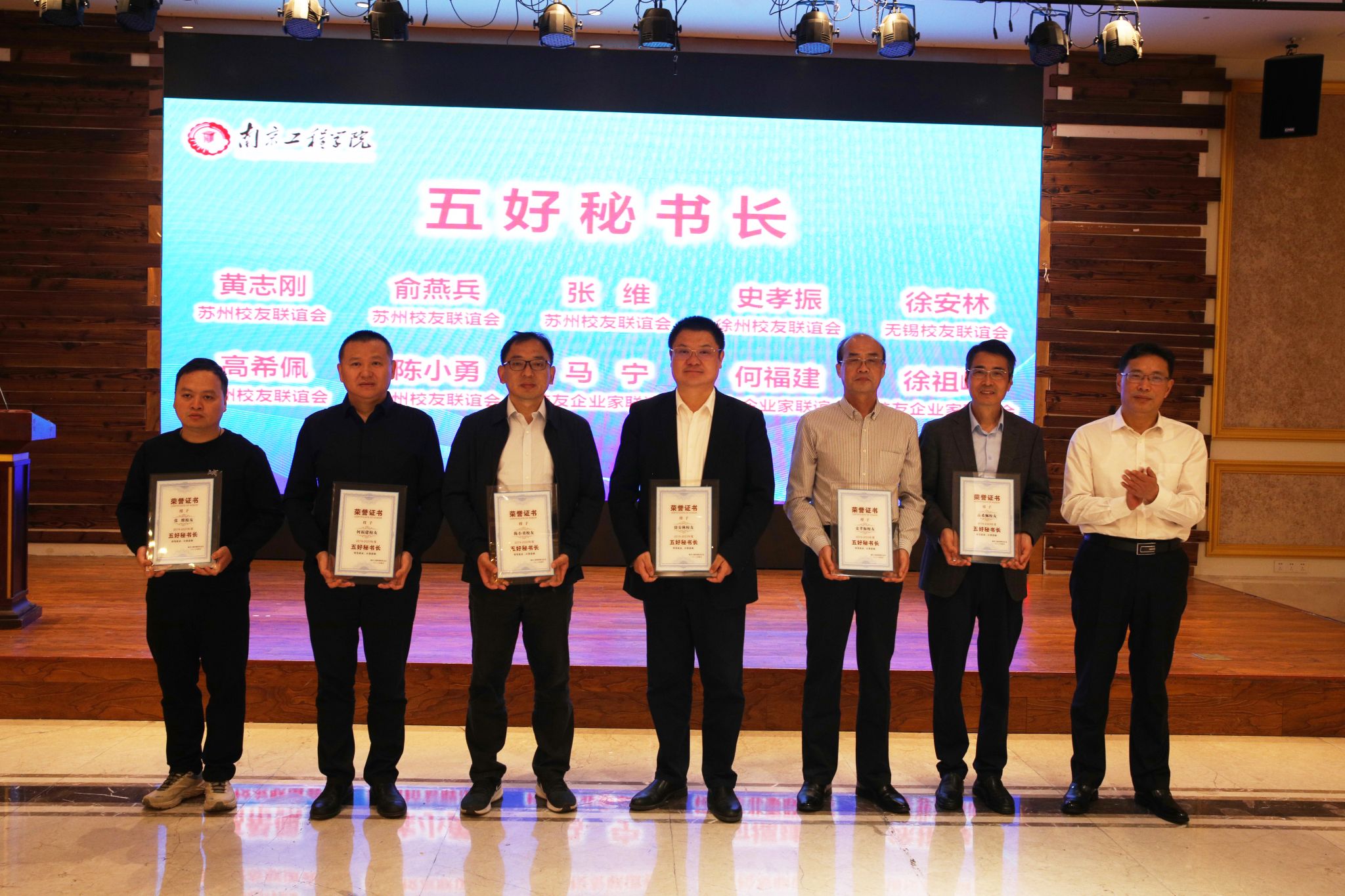 会议举行了优秀校友组织和个人表彰仪式。张仰飞副院长为荣获首批“五星校友会”荣誉称号的苏州校友联谊会、徐州校友联谊会、无锡校友联谊会、泰州校友联谊会和校友企业家联谊会颁发铜牌;为荣获首批“五好秘书长”称号的苏州校友联谊会秘书长张维、黄志刚、俞燕兵,徐州校友联谊会副会长兼秘书长史孝振,无锡校友联谊会秘书长徐安林,泰州校友联谊会副会长兼秘书长陈小勇、副会长高希佩,校友企业家联谊会秘书长何福建、徐祖峰、马宁等颁发了荣誉证书。