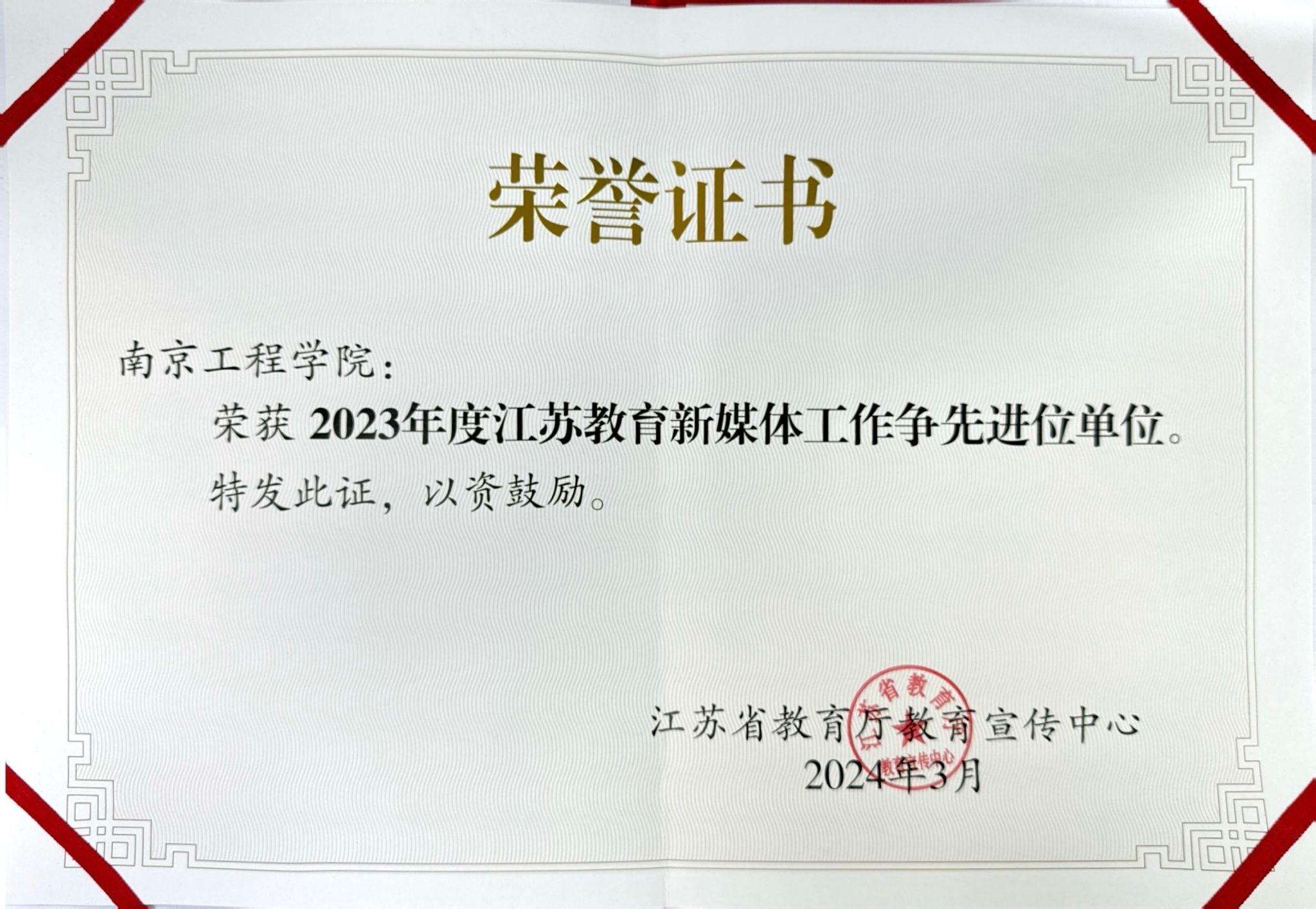 我校获评2023年度江苏教育新媒体工作争先进位单位