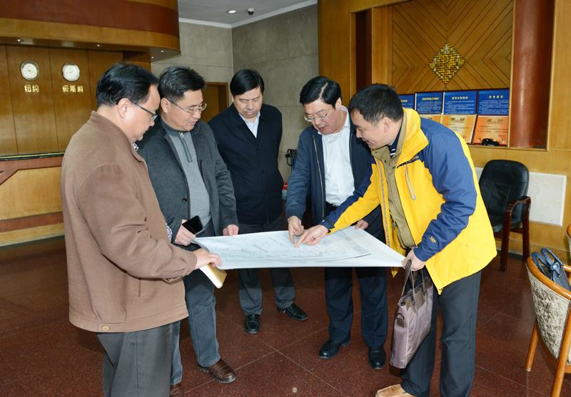 校领导察看老校区布局图