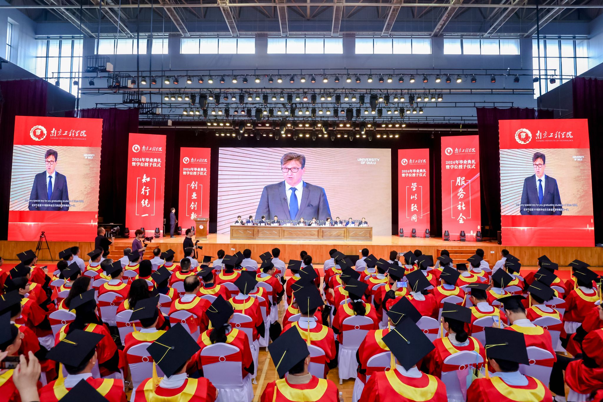 芬兰奥卢大凯发长尤卡·尼尼马奇以线上致辞的方式,向中芬合作办学项目2024届毕业生表示热烈的祝贺,向对毕业生们给予悉心指导和关怀的老师、家长致以最诚挚的敬意和衷心的感谢,并祝愿同学们在自己选择的职业生涯中收获幸福的人生。