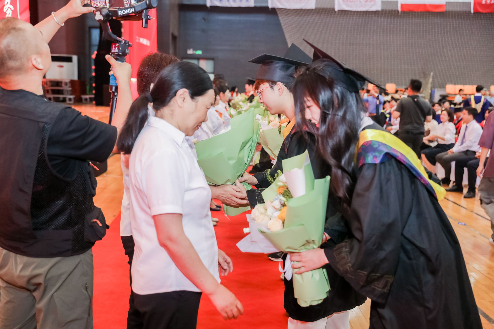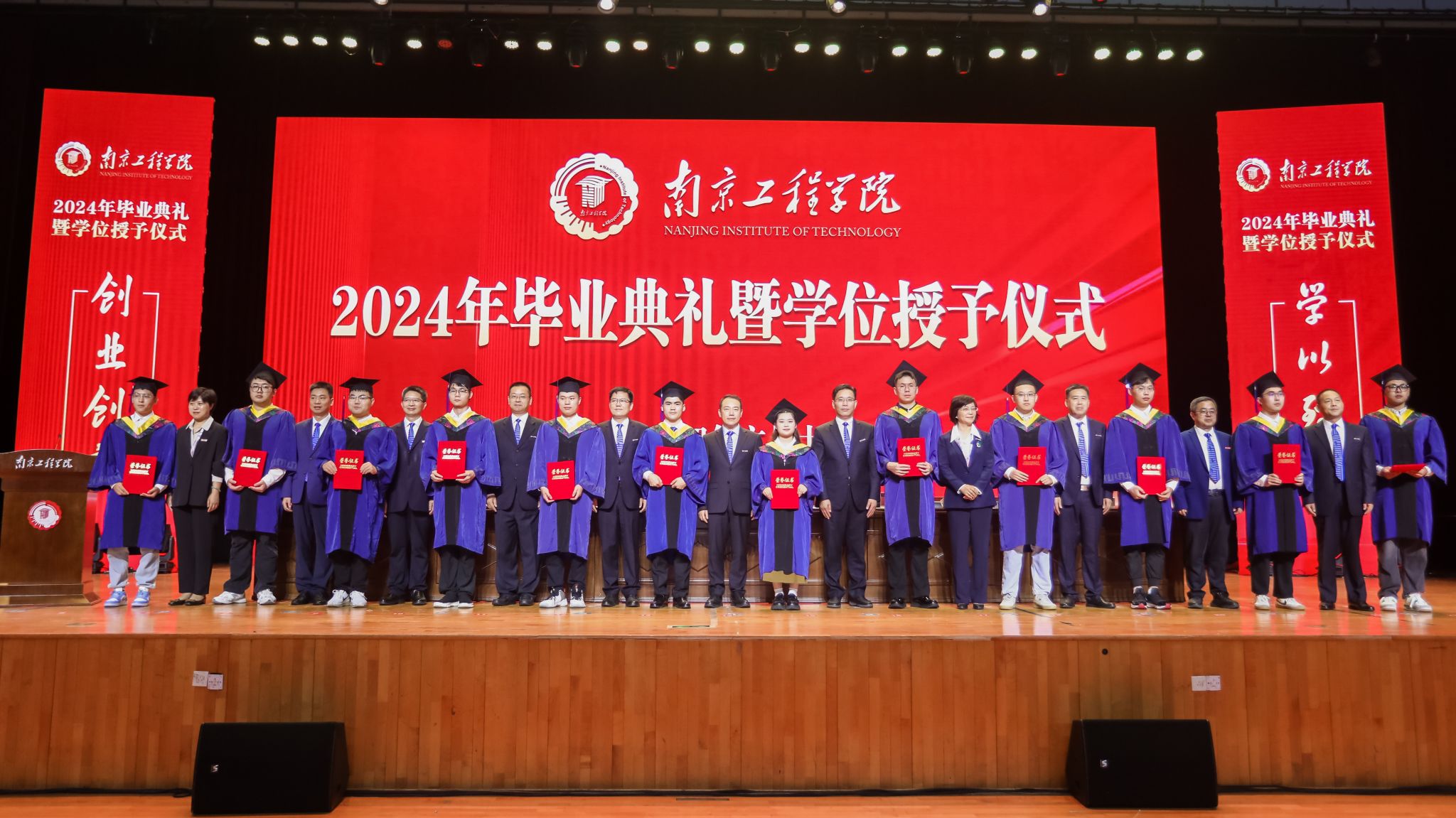 在全场热烈的掌声中,与会领导为所有参加毕业典礼的学子授予学位、颁发学位证书,并一一为他们扶正流苏,祝贺他们学有所成,鼓励他们展翅高飞。