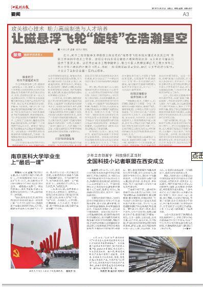 《江苏科技报》:攻关核心技术助力高端制造与人才培养 让磁悬浮飞轮“旋转”在浩瀚星空