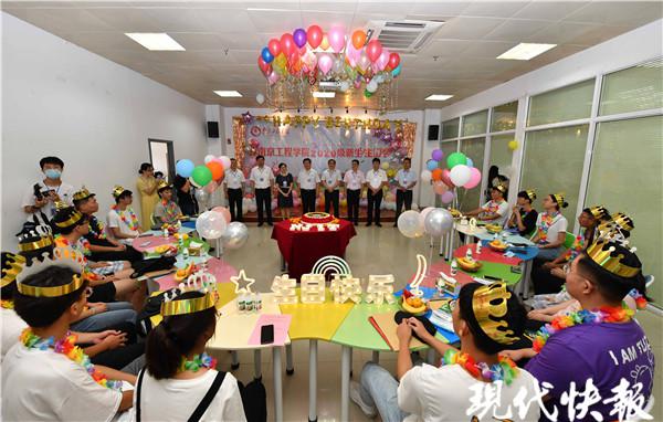 " 祝大家 18 岁生日快乐,开启全新的大学生活。" 开学报到日中午,大学生活动中心传来欢快的《生日歌》,18 名恰逢 9 月 12 日过生日的新生在此吹蜡烛、切蛋糕。这是南工程连续第五年在开学报到日,为新生过集体生日了。今年,全体校领导也都来到了生日会的现场,他们为过生日的新生,送礼物送祝福,亲笔书写贺卡,为他们佩戴校徽。现场,史国君书记、史金飞院长还通过直播镜头,向过生日新生的父母问好,表达了对孩子的祝福,对家长的祝贺。视频那头,来自南通的新生单仁杰的妈妈不停地说着谢谢," 凯发比我们想得都周到,给孩子们这么多关爱,这样的 18 岁生日太有意义了,我们全家人都非常感谢,也放心了、安心了。"。