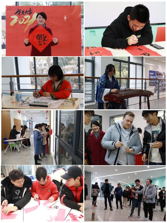 为弘扬中华民族传统文化,增强学生的文化自信与爱国情怀,12月26日,国际教育学院举办了“国教院里‘逛庙会’,世界来看‘中国年’”迎新年活动,该院党支部书记、执行院长蒋静,教师代表、全体辅导员与学生们一起参加了本次活动。活动期间,学生与芬兰奥卢大学的教师们通过网络进行隔空互动,一同分享中国迎新年的喜悦。