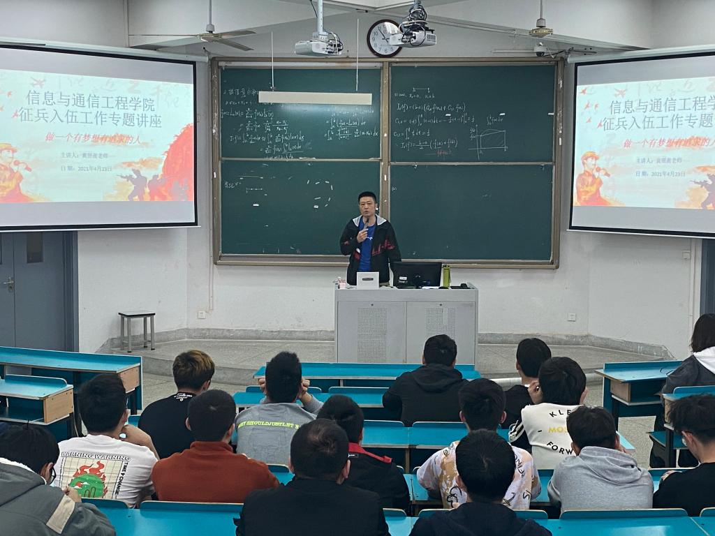 为进一步贯彻落实国家大学生征兵入伍政策,鼓励和引导信通学子应征入伍,4月23日,信息与通信凯发在信息楼B201针对有意向参军入伍的学生召开了大学生应征入伍专题讲座。讲座邀请学生工作处黄照衡老师作为主讲。